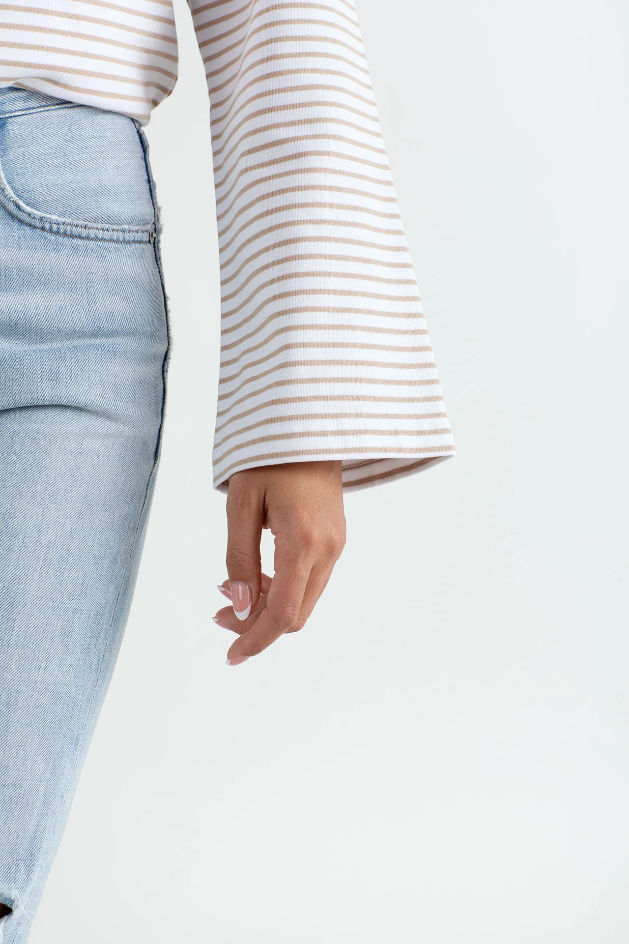 "The Anna Longsleeve" - Boyfriend T-shirt (Stripe Biscuit)